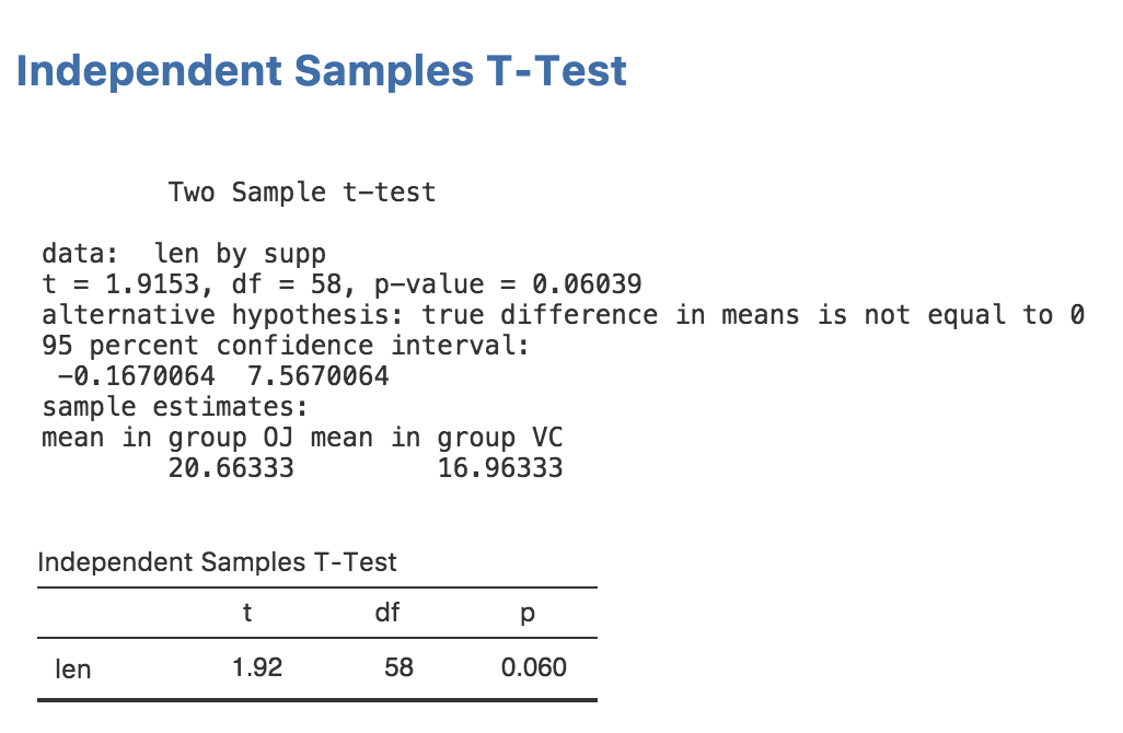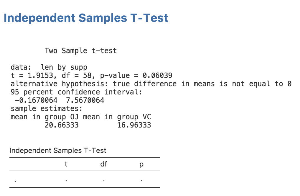t-test. For this, we need to extract the actual values from the t-test