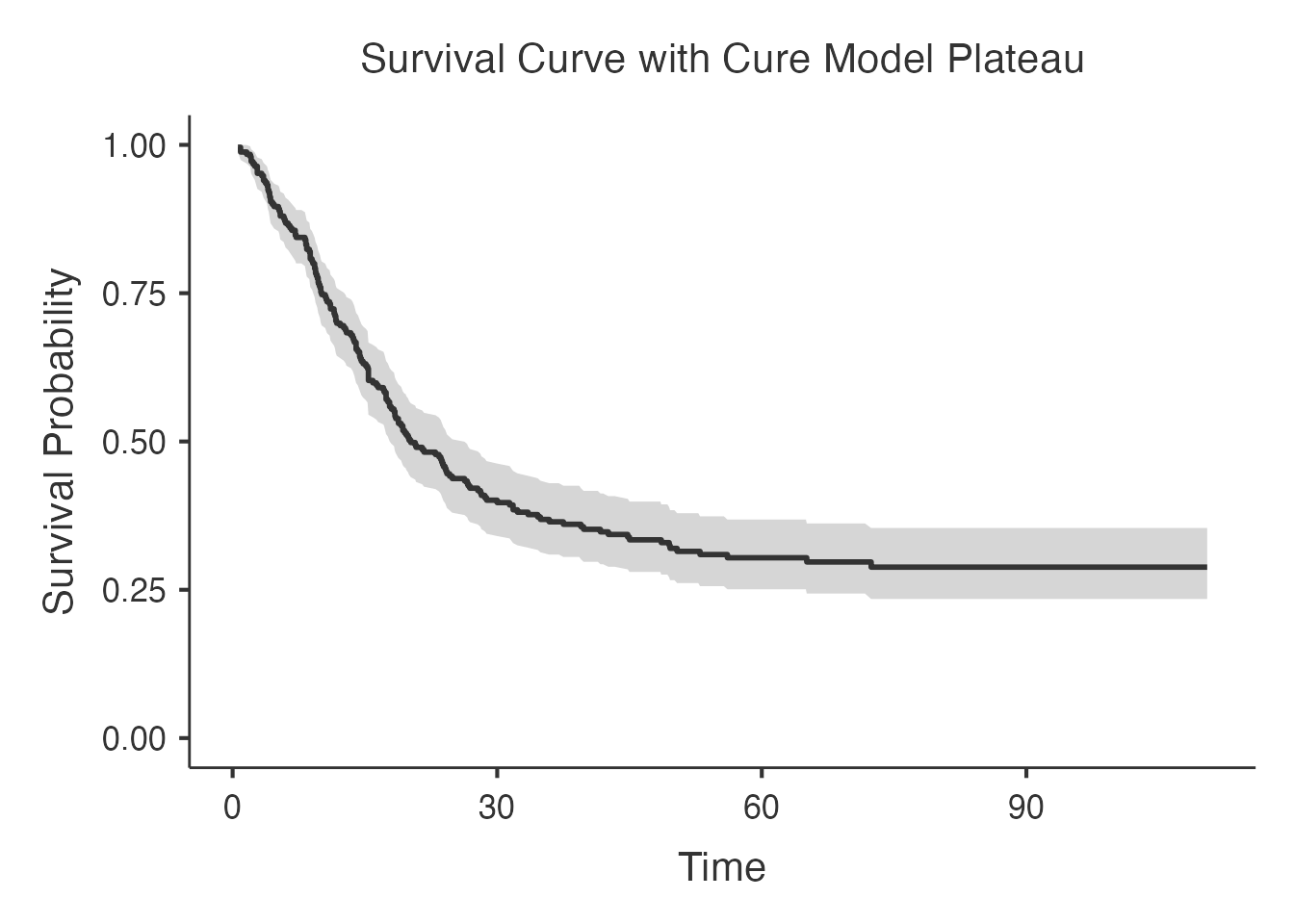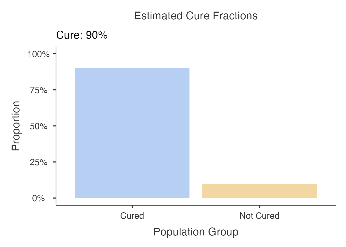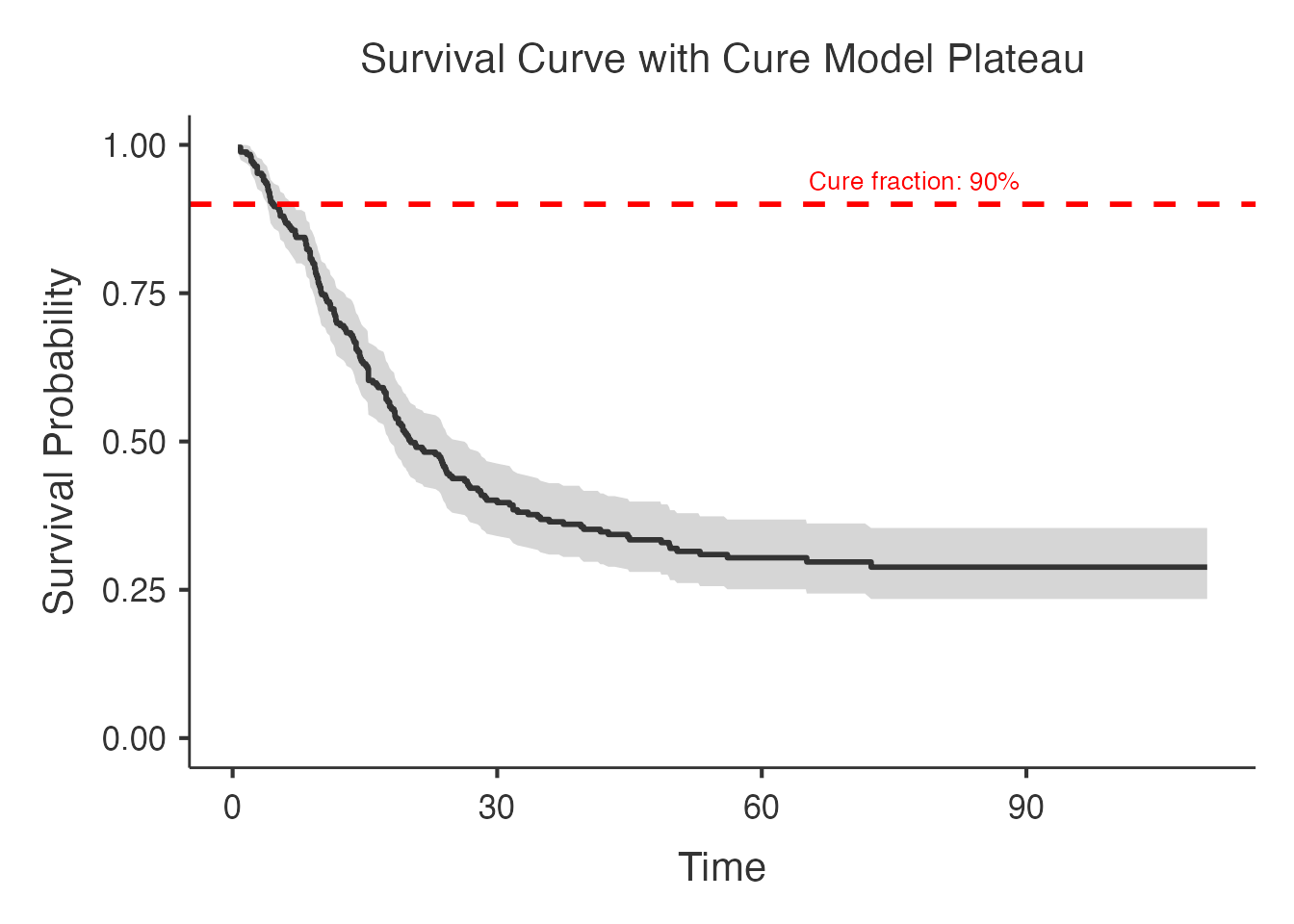 In many solid tumours, a proportion of patients experience long-term disease-free survival that is effectively indistinguishable from the general population. Standard survival models (Cox, Kaplan-Meier) assume every patient will eventually experience the event, which misrepresents prognosis for cancers with a curable subset. Cure models address this by partitioning the population into two groups: patients who are statistically cured and patients who remain at risk (uncured). This yields two clinically actionable quantities: the cure fraction (probability of long-term cure) and the latency distribution (survival among uncured patients).