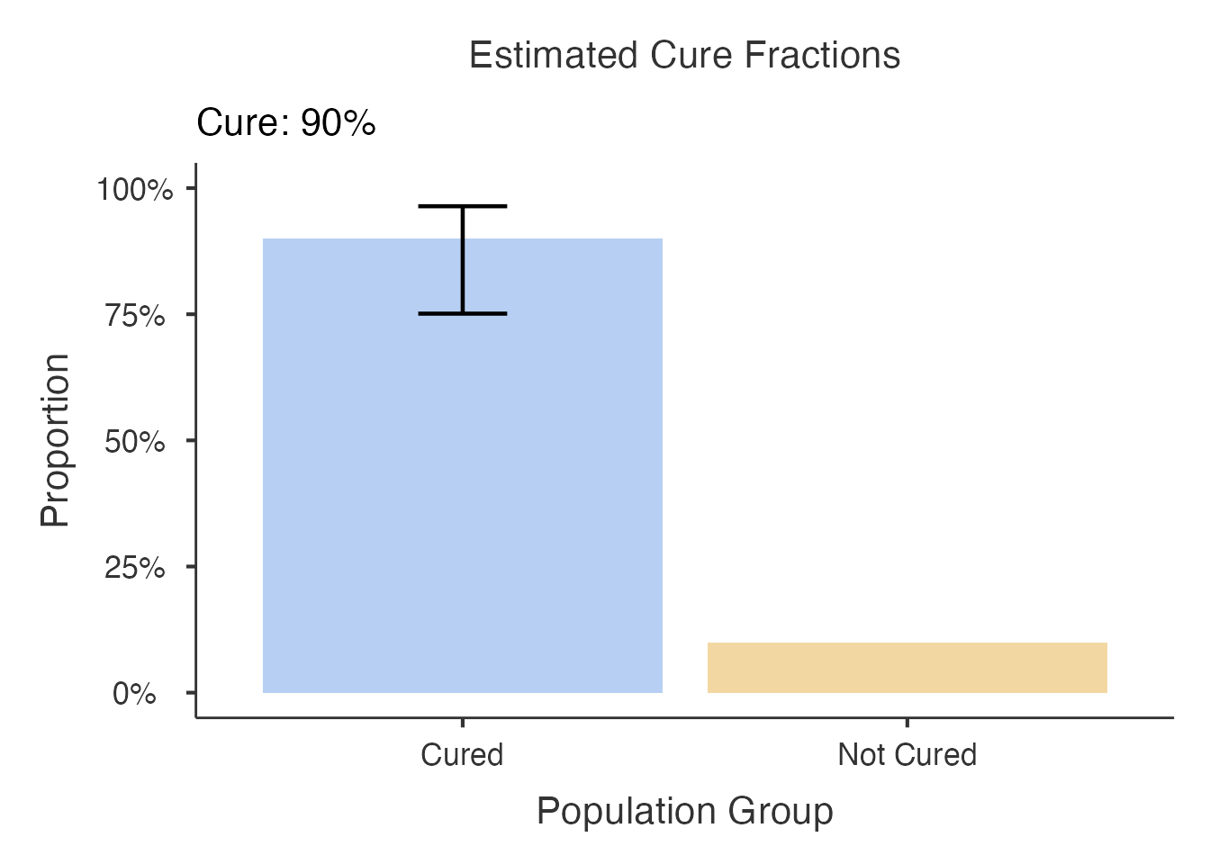 - A statement of the estimated cure fraction with confidence interval (when bootstrap is enabled)