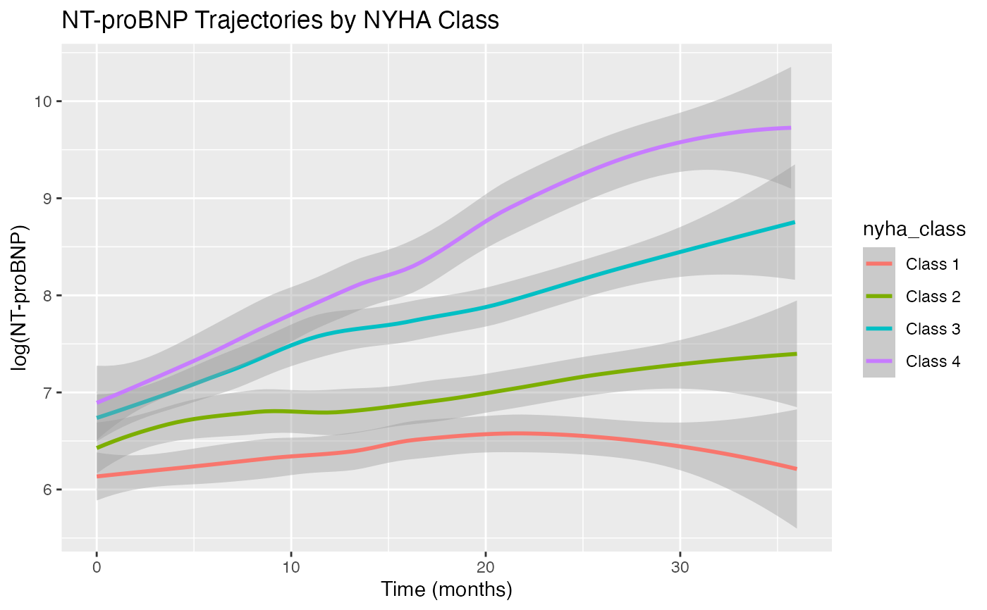 labs(title = "NT-proBNP Trajectories by NYHA Class",
