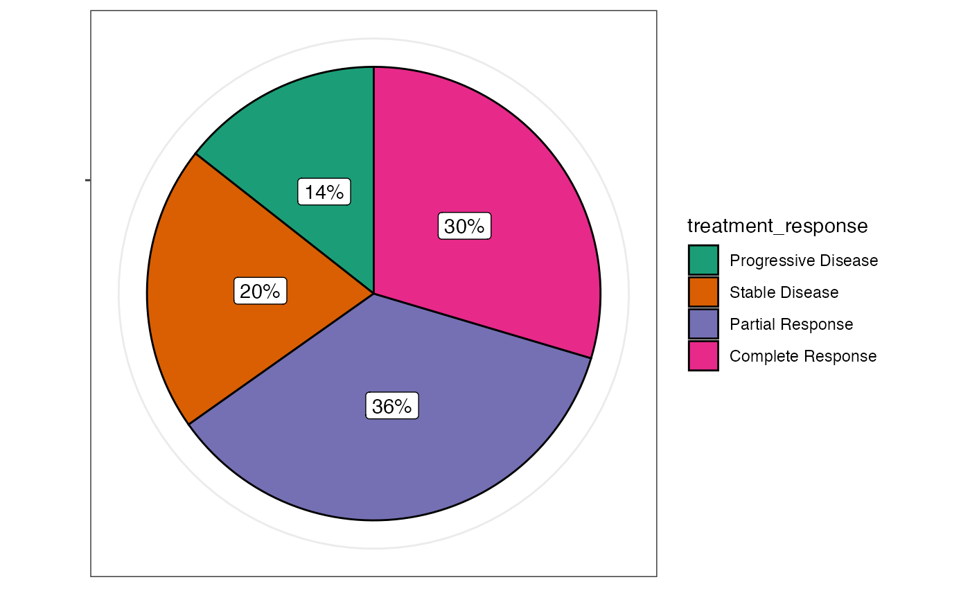 #> Pie chart analysis ready Variable: treatment_response.