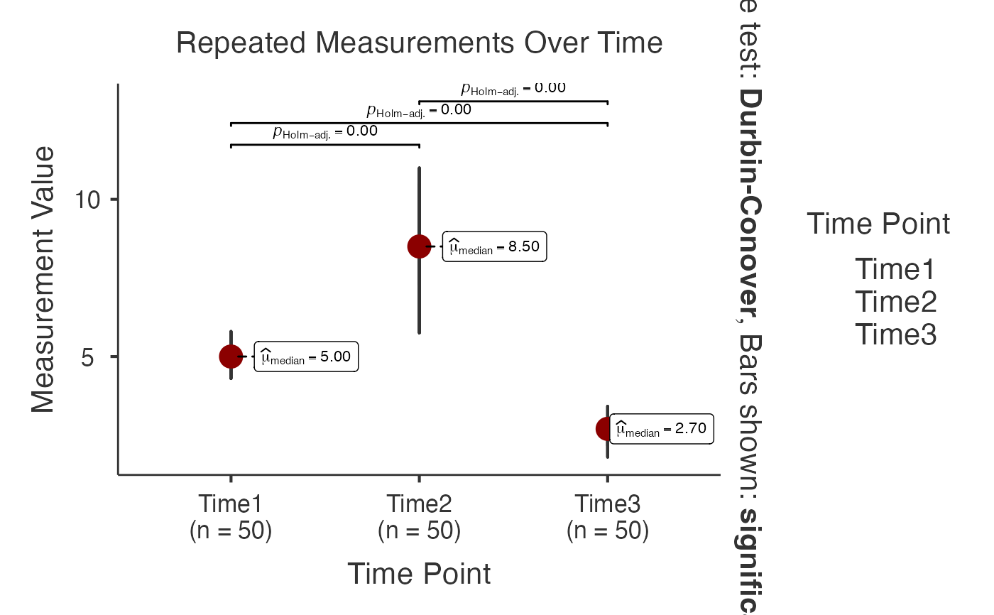 #> #28a745;'>Analysis: Friedman test with 3 measurements per subject