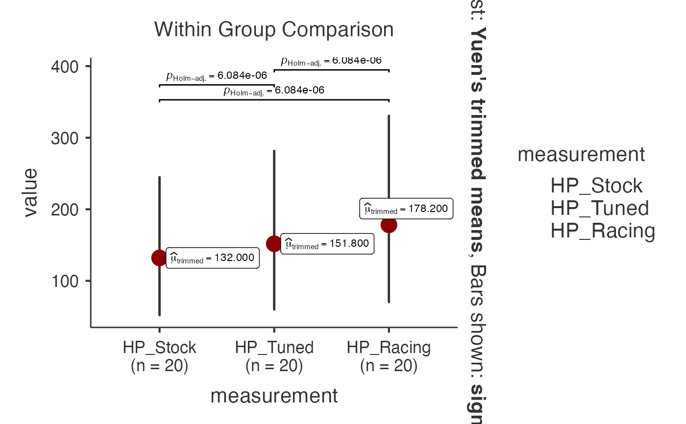 #> Test Used: Robust test uses trimmed means, reducing influence of