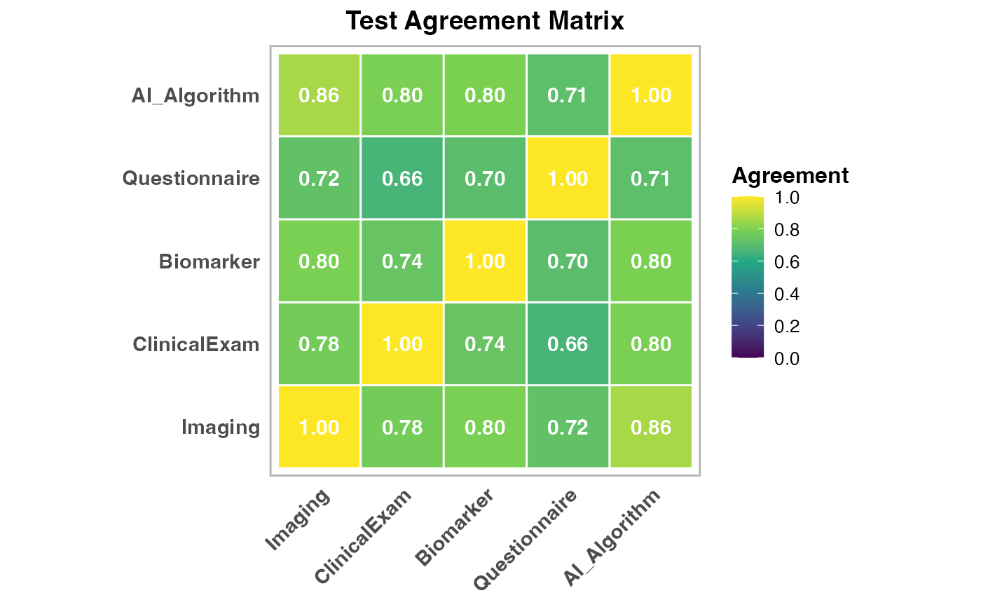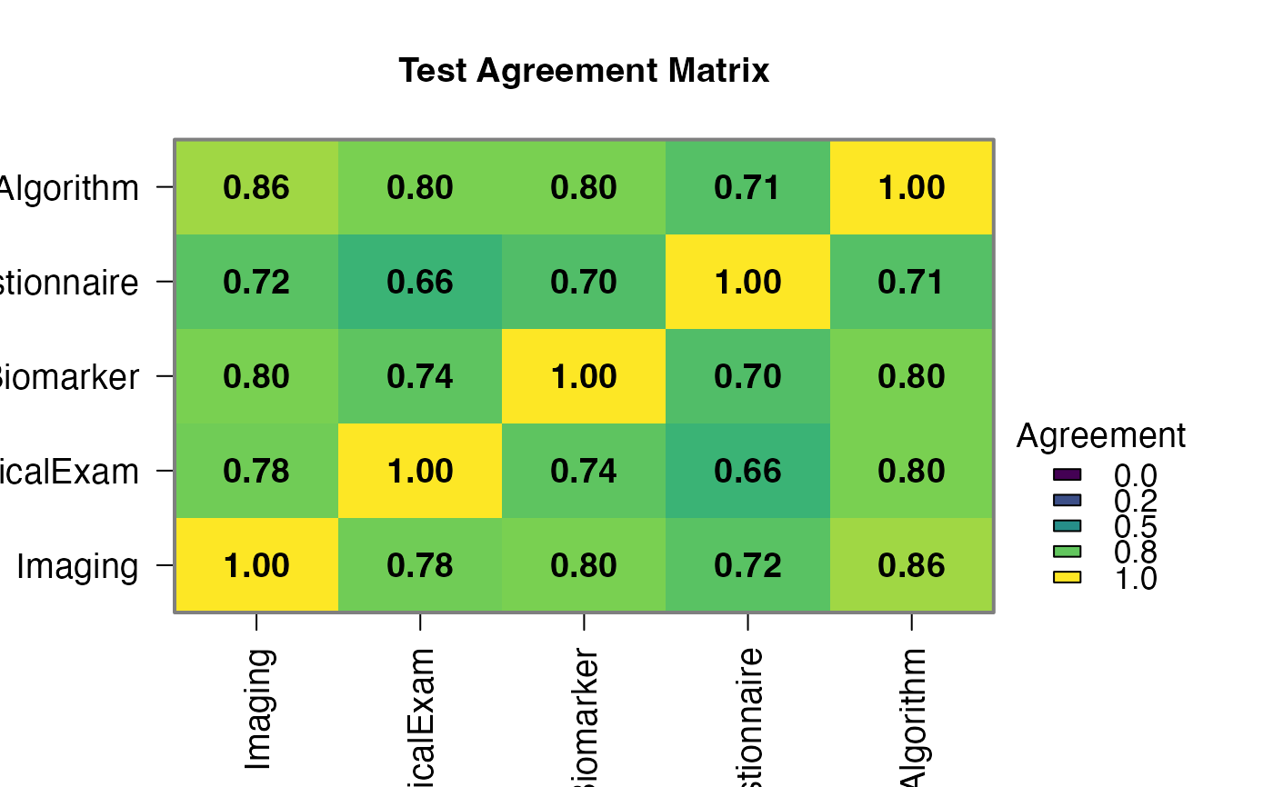 #> Tests analyzed: Imaging, ClinicalExam, Biomarker, Questionnaire,