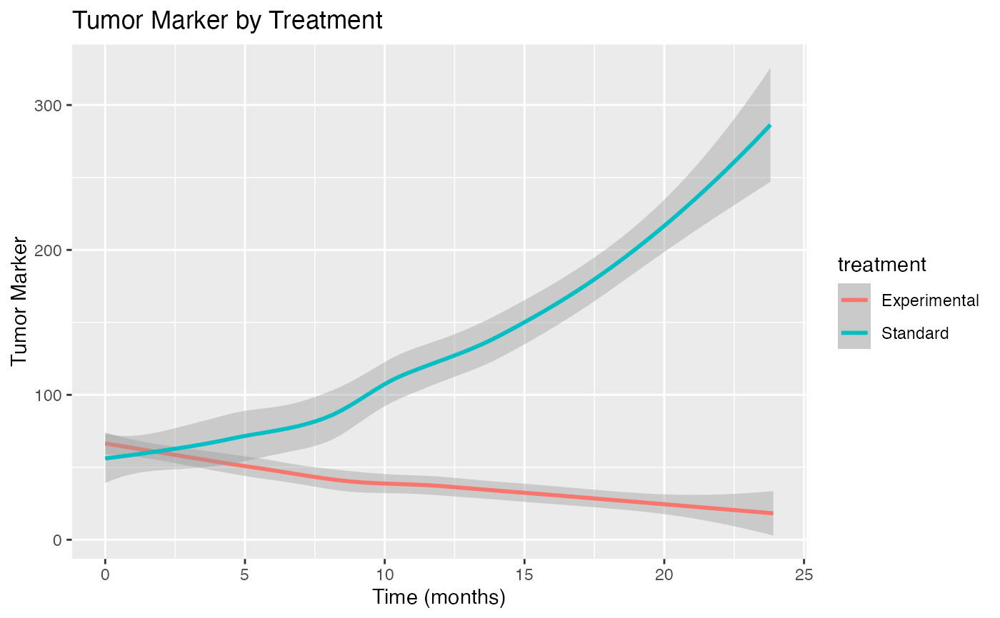 x = "Time (months)", y = "Tumor Marker")