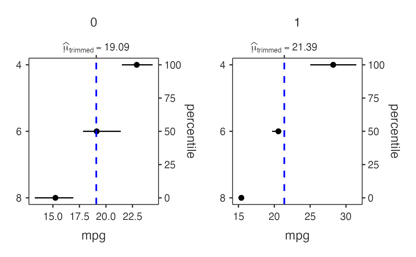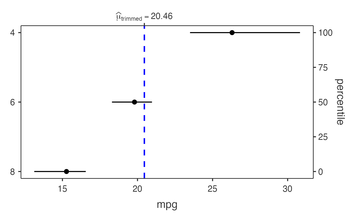 #> cyl categories using a robust test using trimmed means.